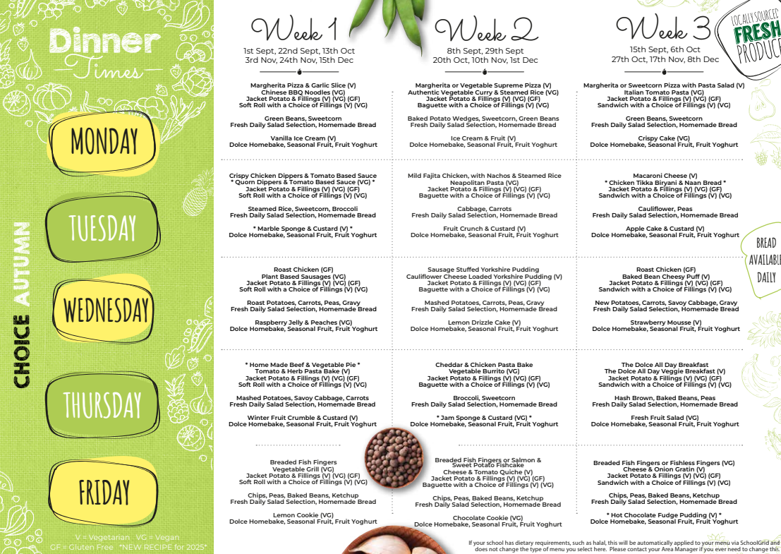 We’re excited to welcome Dolce as our new school meal provider from September. Parents and carers will be able to order and pay for meals in advance using the SchoolGrid app, where weekly menus are also available to view.