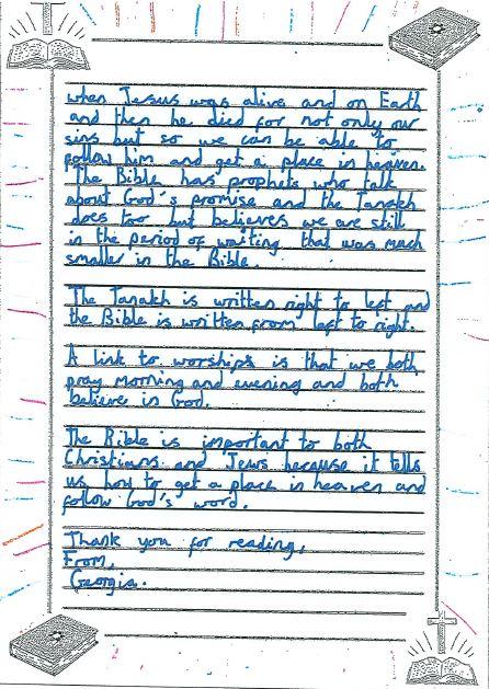The pupils enjoy talking about their faith, and they use subject-specific vocabulary, build upon their prior knowledge, and make links across the topics that are explicitly taught. The older children, in particular, are becoming very reflective and can think ethically and morally, and they use their scripture-based knowledge to debate on world matters, asking pertinent and at times provoking questions of their peers and adults. Links are formed where possible with the wider community to provide enrichment opportunities to promote pupils’ learning, e.g. CAFOD workshops.